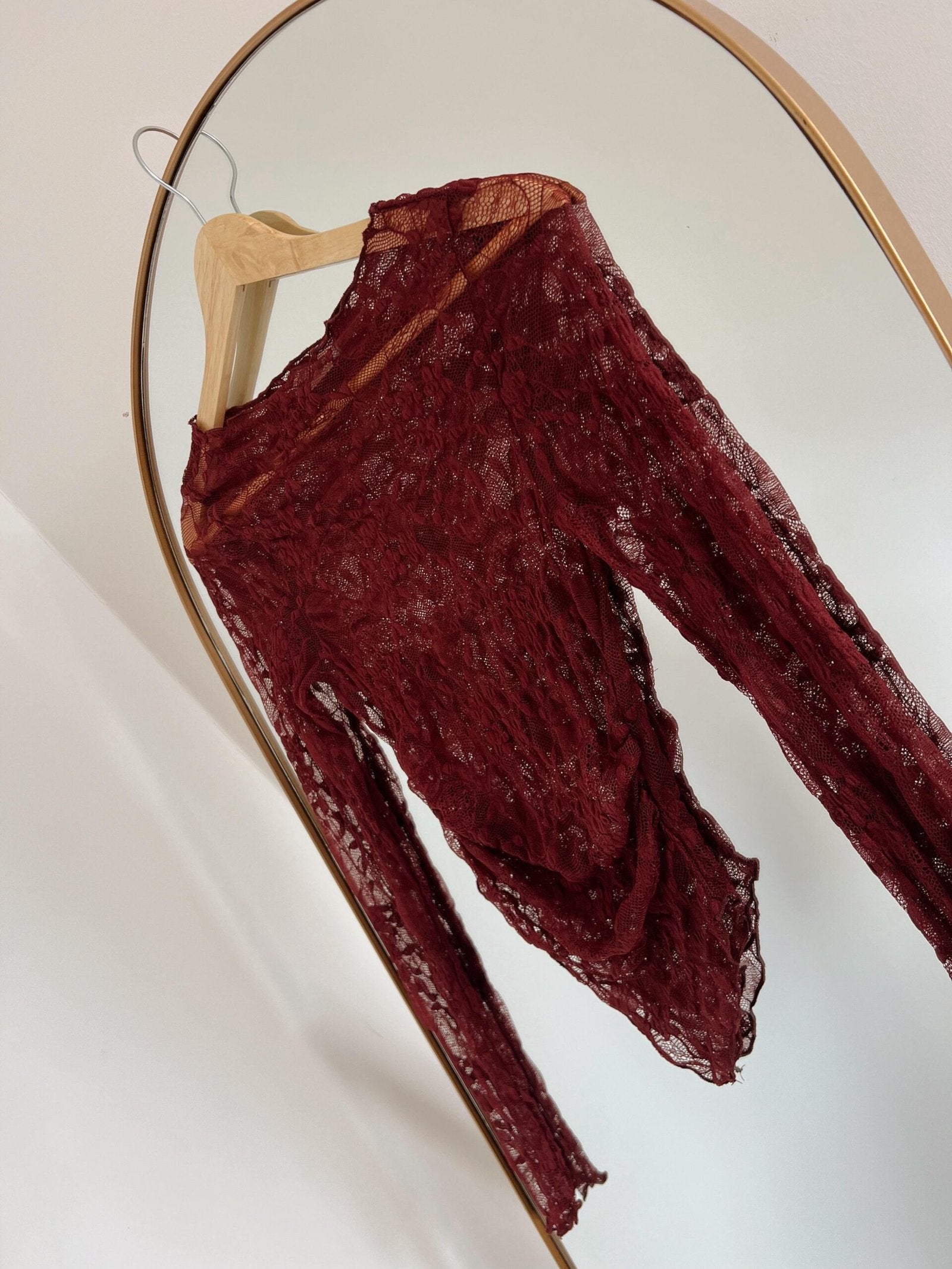 Mesh en encaje con corte asimétrico, su horma es fresca y ligera, es manga larga. Ideal para nuestros momentos favoritos